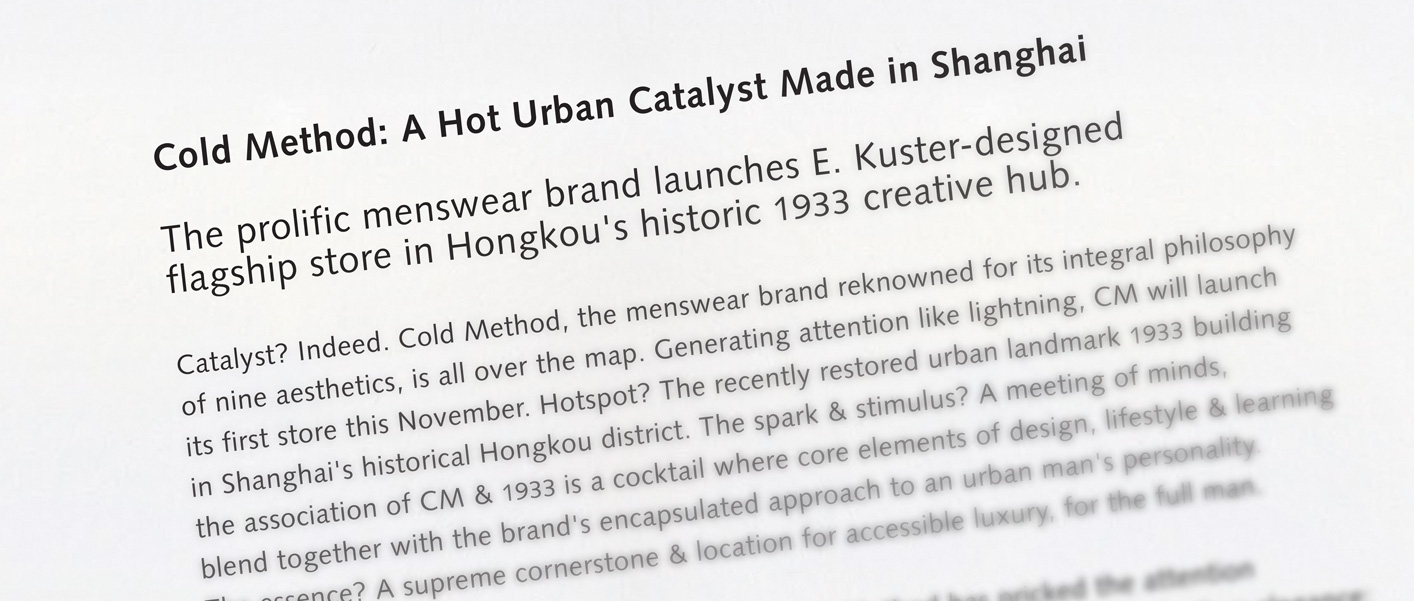 The brand requires a tone that is urbane, systematic & cosmopolitain.
